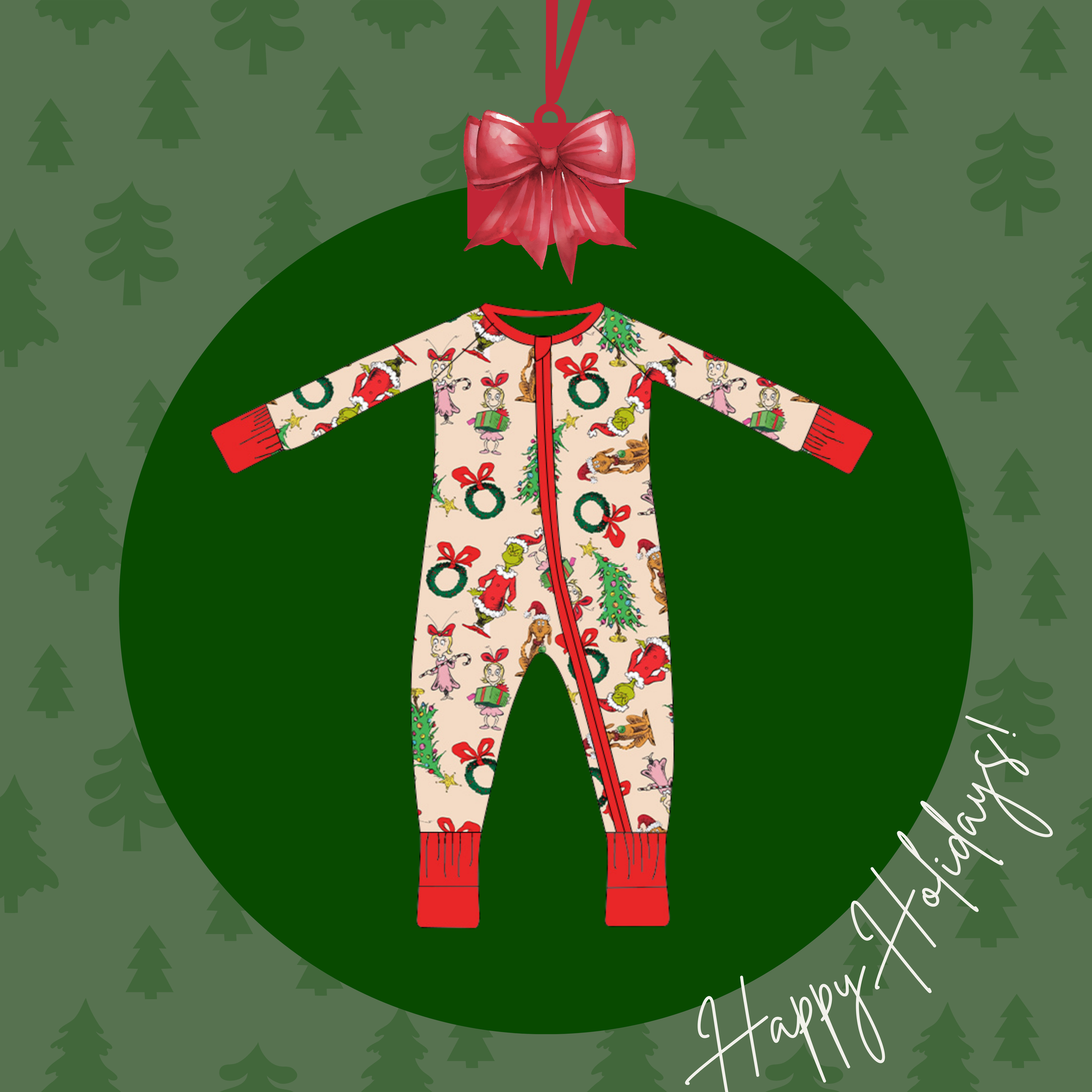 🎄✨ Step into the magic of Whoville Christmas! This playful sleeper features festive trees, cheerful characters, and holiday wreaths that capture the whimsy of the season. Made from buttery-soft bamboo that’s breathable, stretchy, and oh-so-snuggly, it’s the perfect fit for sweet dreams and Christmas morning fun. ❤️💚